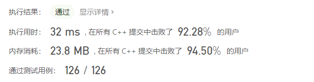 typedef pair<int,int> P; vector<P> flag[100007]; // first是字母,second是指向的序号 bool End[100007]; int cnt; //目前节点数 class Solution { public: string replaceWords(vector<string>& dictionary, string sentence) { //初始化 cnt=0; for (int i=0;i<1007;i++) flag[i].clear(); memset(End,0,sizeof(End)); int lim=dictionary.size(); for (int i=0;i<lim;i++){ int temp=dictionary[i].size(); int now=0; bool building=false; for (int j=0;j<temp;j++){ bool sign=false; if (building) goto here; for (int k=0;k<flag[now].size();k++) if (dictionary[i][j]==flag[now][k].first){ now=flag[now][k].second,sign=true; break; } if (sign) //不需要新建新节点 continue; //需要新建新节点 here:++cnt; P p; p.first=dictionary[i][j],p.second=cnt; flag[now].push_back(p); now=cnt; building=true; } End[now]=true; } lim=sentence.size(); int now=0; bool skip=false; bool forward=true; string ans; for (int i=0;i<lim;i++) if (sentence[i]==' '){ now=0; skip=false; forward=true; ans+=' '; } else if (!skip){ ans+=sentence[i]; int temp=flag[now].size(); if (forward){ forward=false; for (int j=0;j<temp;j++) if (sentence[i]==flag[now][j].first){ now=flag[now][j].second; forward=true; if (End[now]){ // return ans; skip=true; } break; } } } return ans; } }; //字典树