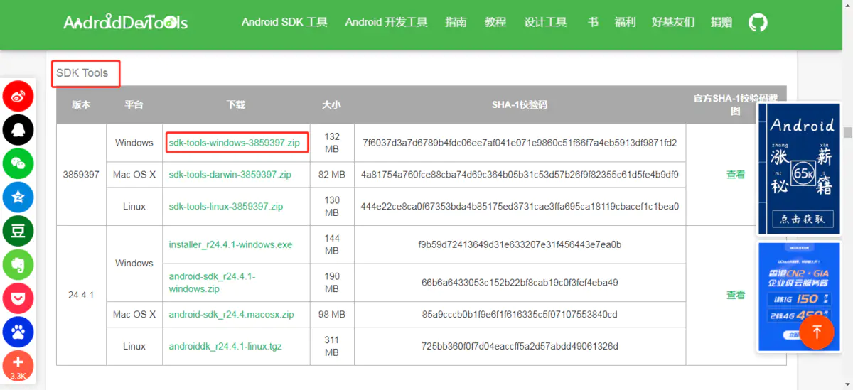 - 1、进入https://www.androiddevtools.cn/,选择SDK tools下载最新压缩包即可