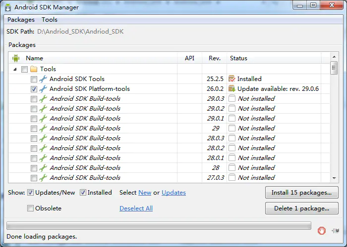 若需要安装新的包可在SDK Manager下载即可