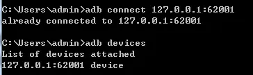 (注:如果62001端口无法连接,可以尝试使用adb connect 127.0.0.1:62025端口。)