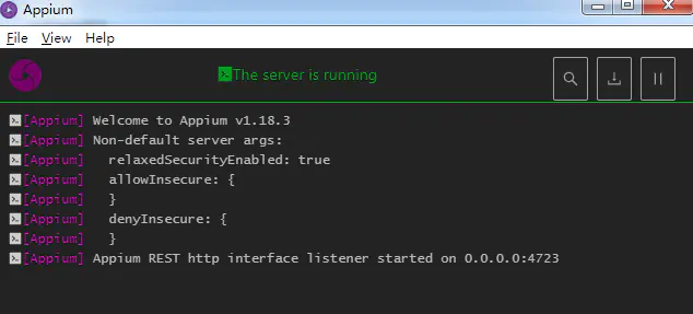 4、点击Start Server 1.8.3按钮,启动Appium Desktop