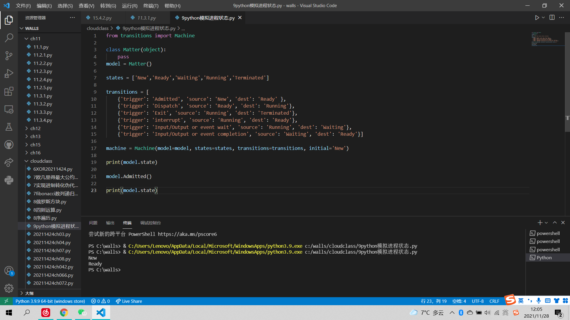 2021-2022-1 20211424 《信息安全专业导论》 python模拟进程状态