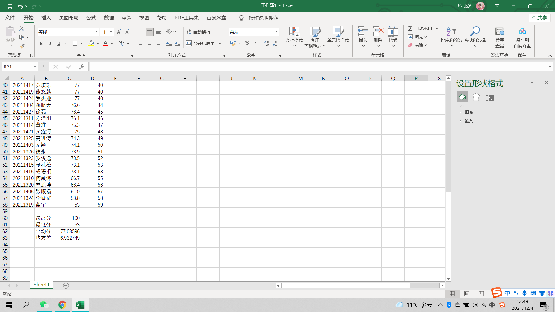 2021-2022-1 20211424 《信息安全专业导论》 Excel数据统计与分析