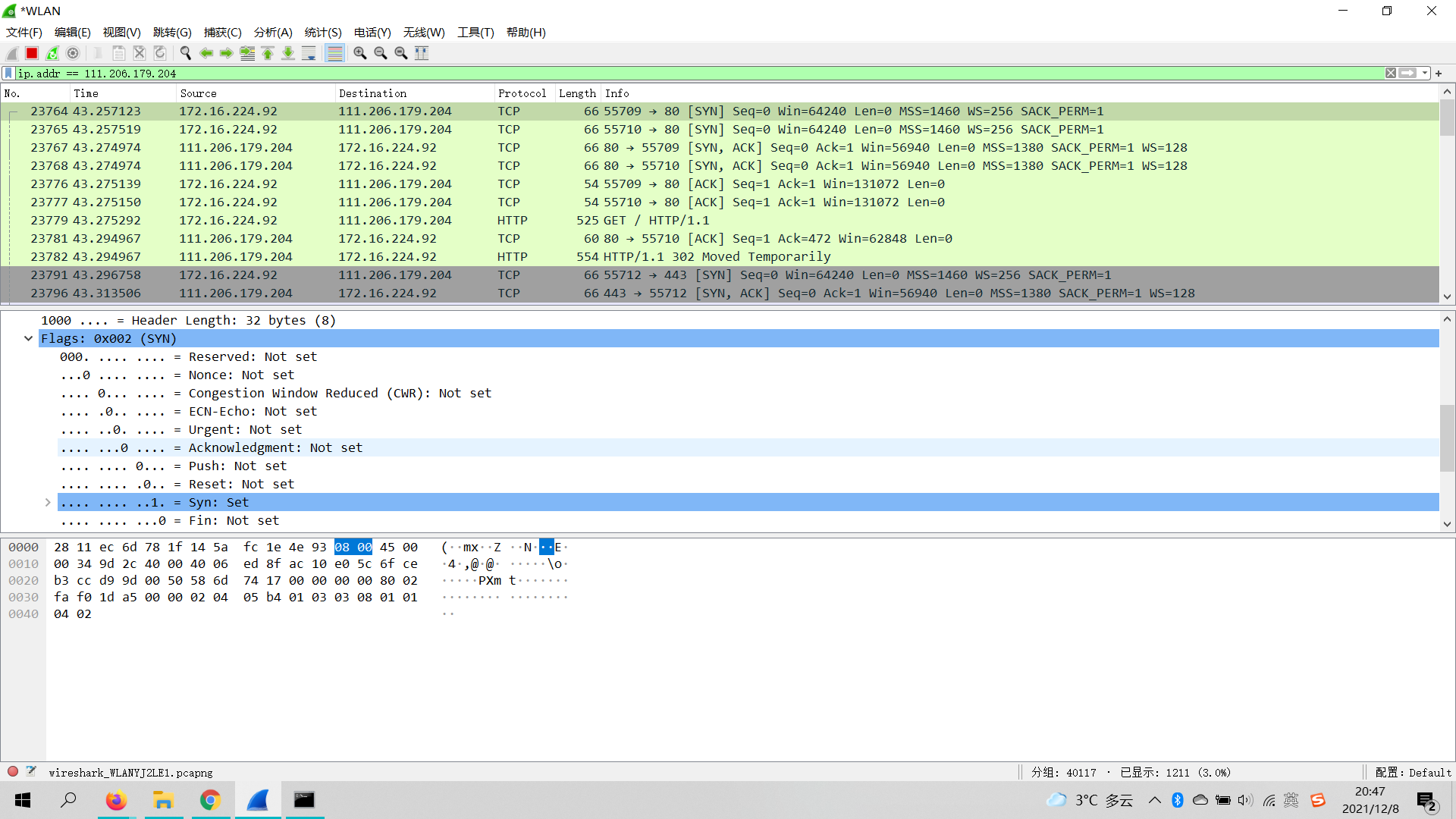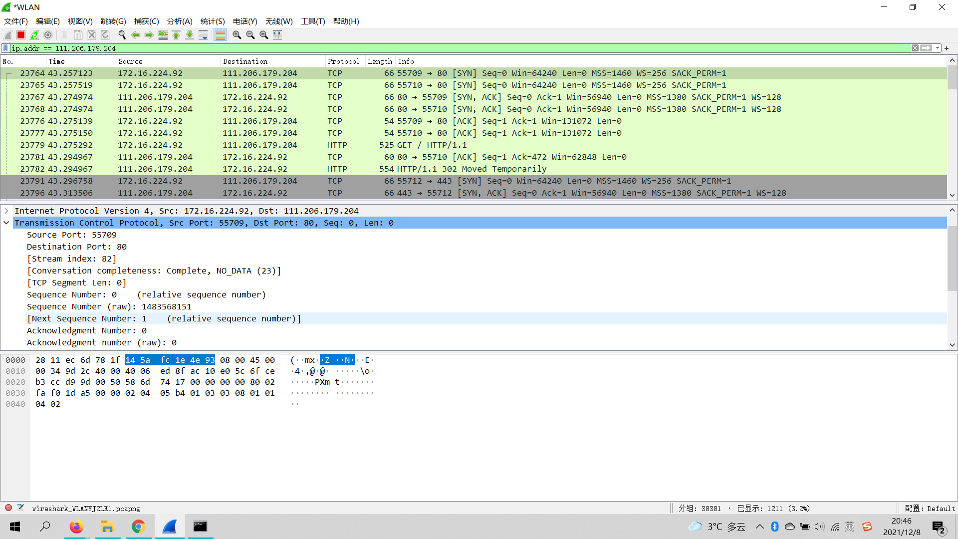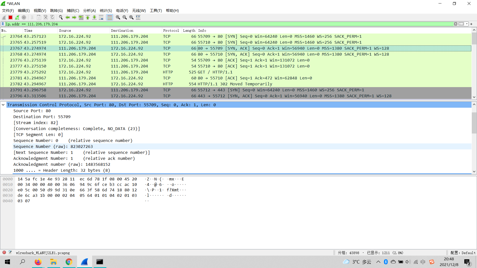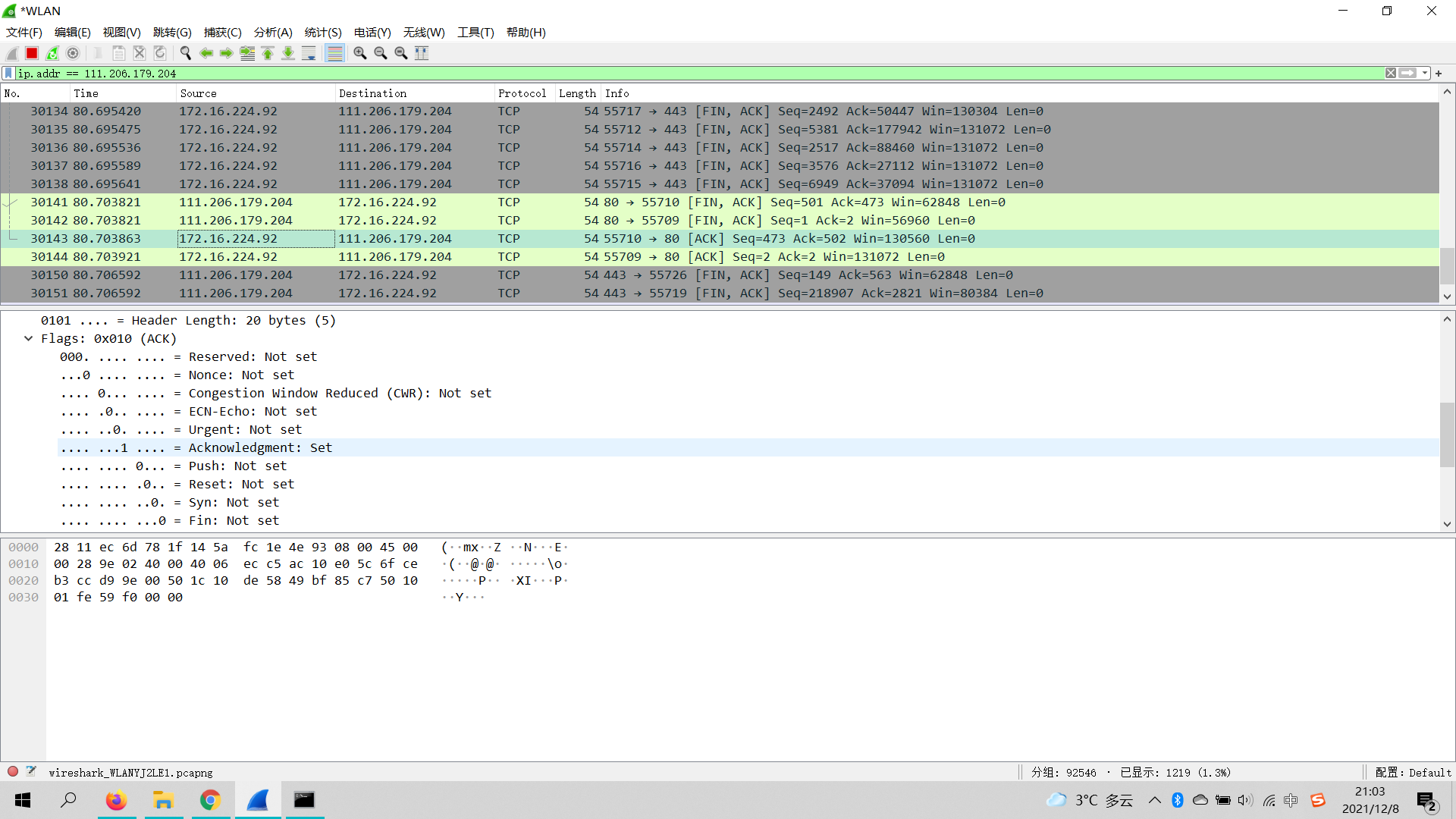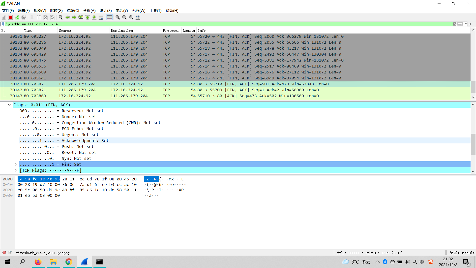 2021-2022-1 20211424 《信息安全专业导论》 Wireshark 实践