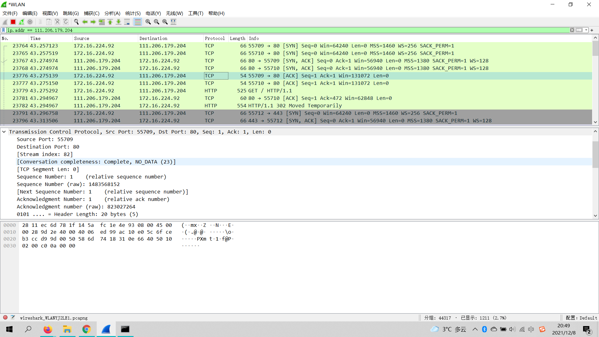 参考 https://www.cnblogs.com/mq0036/p/11187138.html,访问一个网站,抓包分析一次TCP三次握手,四次分手的过程。 提交截图或博客链接。