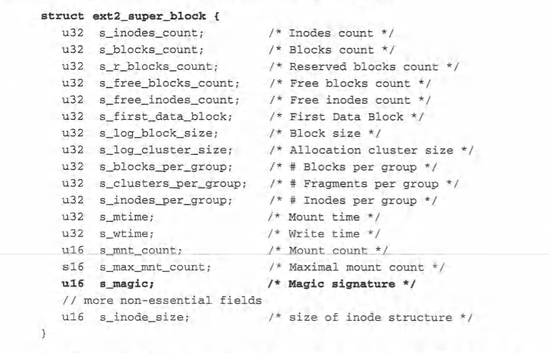 // check magic number to ensure itz s an EXT2 FS ninodes = sp->s_inodes_count //