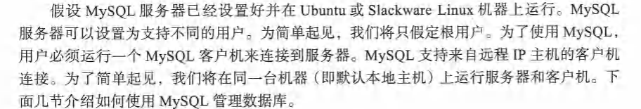 MySQL(MySQL 2018)是一个关系数据库系统(Codd 1970)。在关系数据库中,数据存储在表中。每个表由多个行和列组成。表中的数据相互关联。表也可能与其他表有关联。关系结构使得可在表上运行查询来检索信息并修改数据库中的数据。关系数据库系统的标准查询语言是SQL(结构化查询语言),包括MySQL。