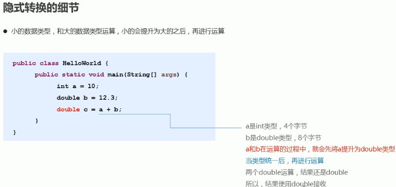 1、当小的数据类型和大的数据类型在一起运算的时候,小的数据类型会提升为大的数据类型再进行运算。特别注意的是:byte、short、char在进行运算的时候,都会直接提升为int,然后再进行运算;