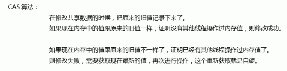 /** * Atomic工具类可以有效安全的解决数据的原子性问题 */ public class AtomicDemo { public static void main(String[] args) { // 初始化一个默认值为0的原子型Integer AtomicInteger a1 = new AtomicInteger(); // 初始化一个指定值的原子型Integer AtomicInteger a2 = new AtomicInteger(10); // int get():获取值 System.out.println(a1.get());// 0 // int getAndIncrement():以原子方式将当前值加1,返回自增前的值 int andIncrement = a1.getAndIncrement(); System.out.println(andIncrement);// 0 System.out.println(a1.get());// 1 // int incrementAndGet():以原子方式将当前值加1,返回自增后的值 int incrementAndGet = a2.incrementAndGet(); System.out.println(incrementAndGet);// 11 // int andAndGet():以原子方式将参数与对象中的值相加,并返回结果 int addAndGet = a2.addAndGet(2); System.out.println(addAndGet);// 13 // int getAndSet():以原子方式设置为newValue的值,并返回旧值 int andSet = a2.getAndSet(100); System.out.println(andSet);// 13 System.out.println(a2.get());// 100 } }
