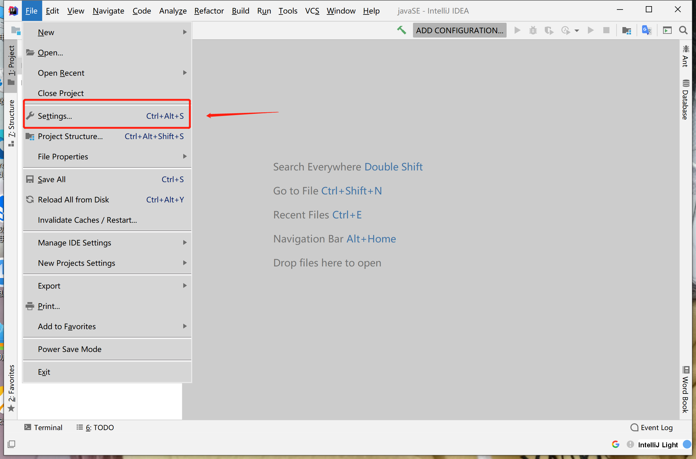 二、点击Fils>点击Settings