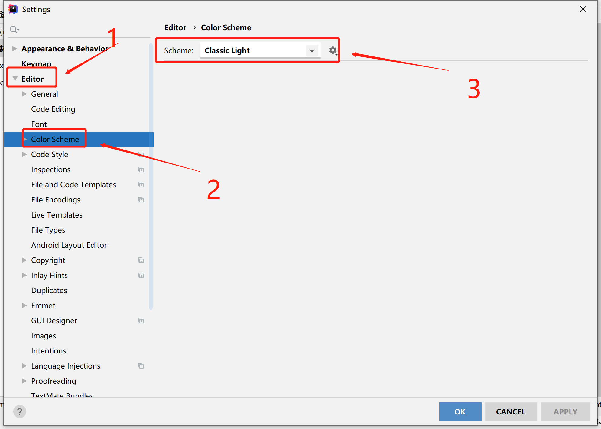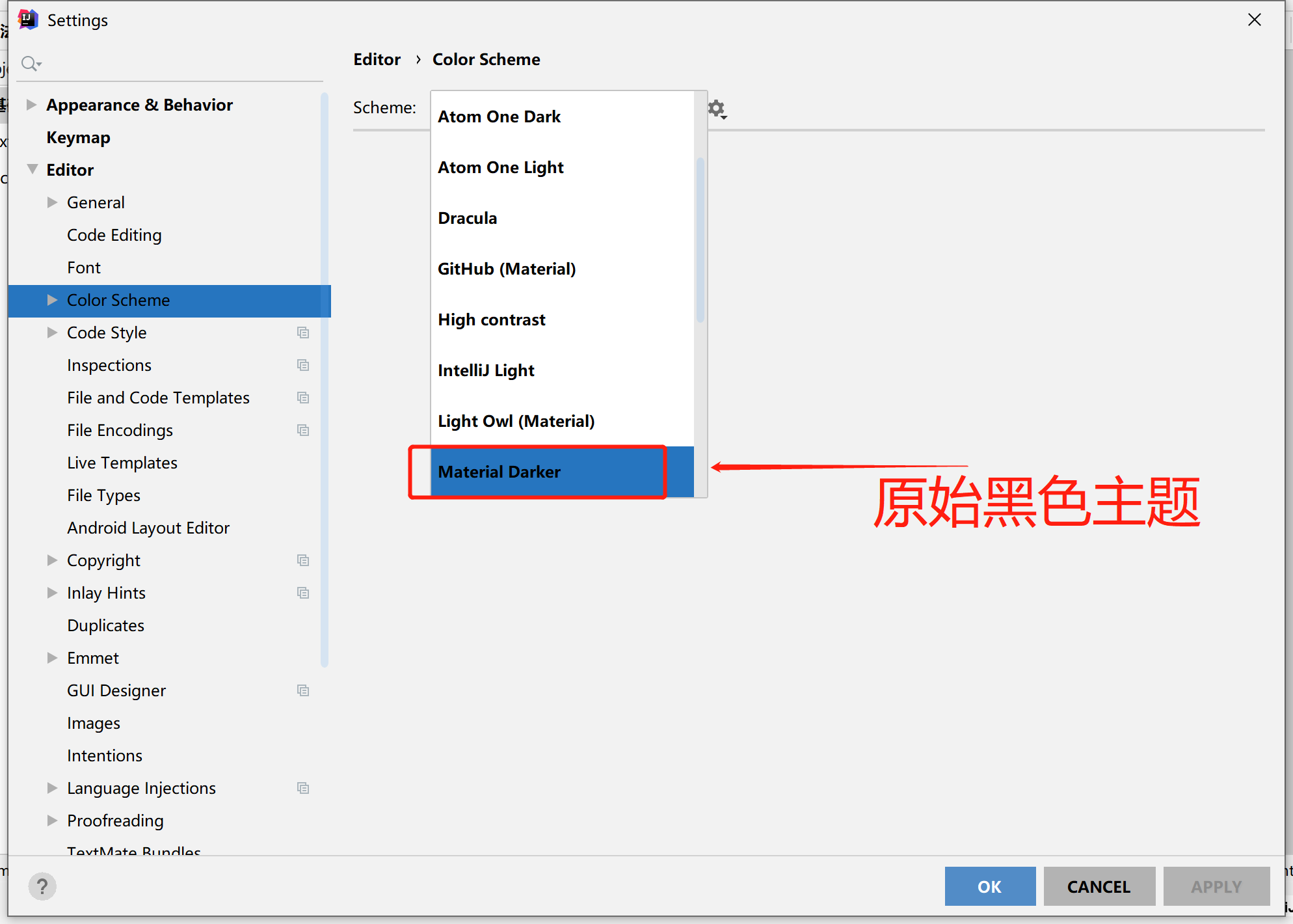 三、点击Editor>点击Color Scheme>点击选择主题颜色