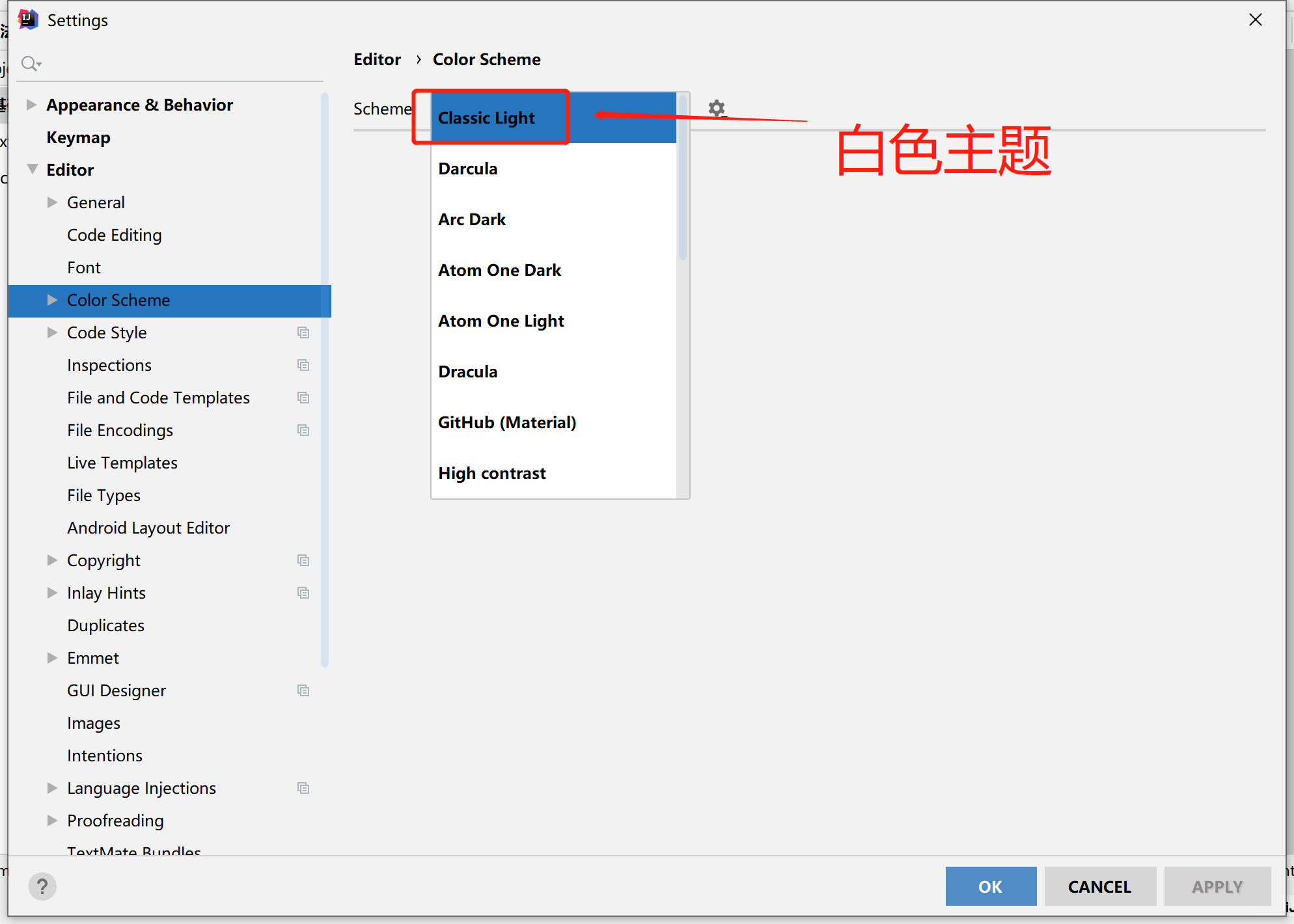 四、点击Classic Light即可设置白色主题