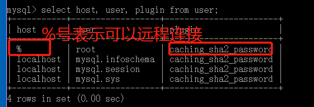 ALTER USER 'root'@'%' IDENTIFIED WITH mysql_native_password BY 'weihu123'; 更新user为root,host为% 的密码为weihu123