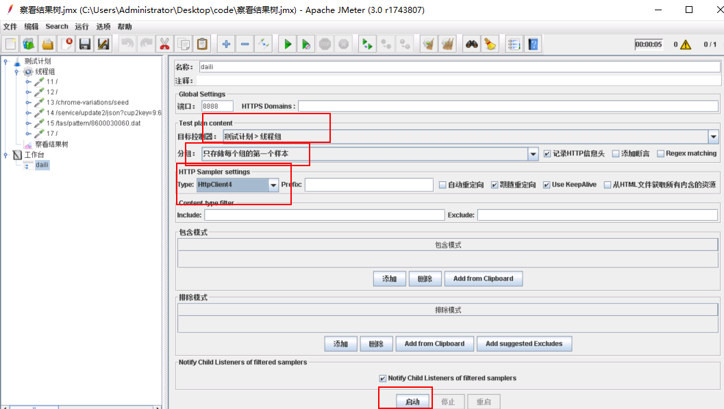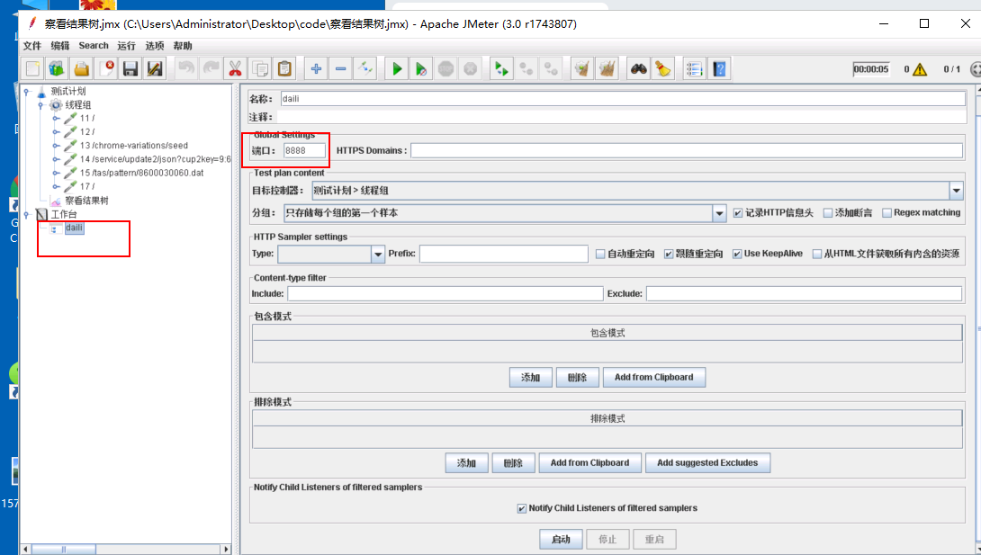 一、创建线程组,并且添加查看结果数,在工作台添加--》非测试元件--》HTTP代理服务器