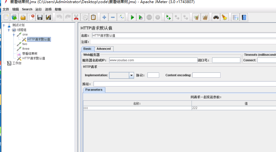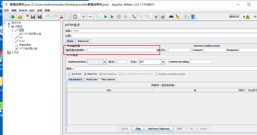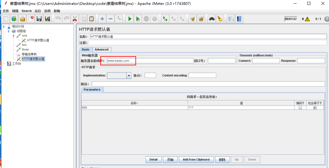 重复的写服务器名称或IP比较麻烦,可以通过设置HTTP请求默认值设置