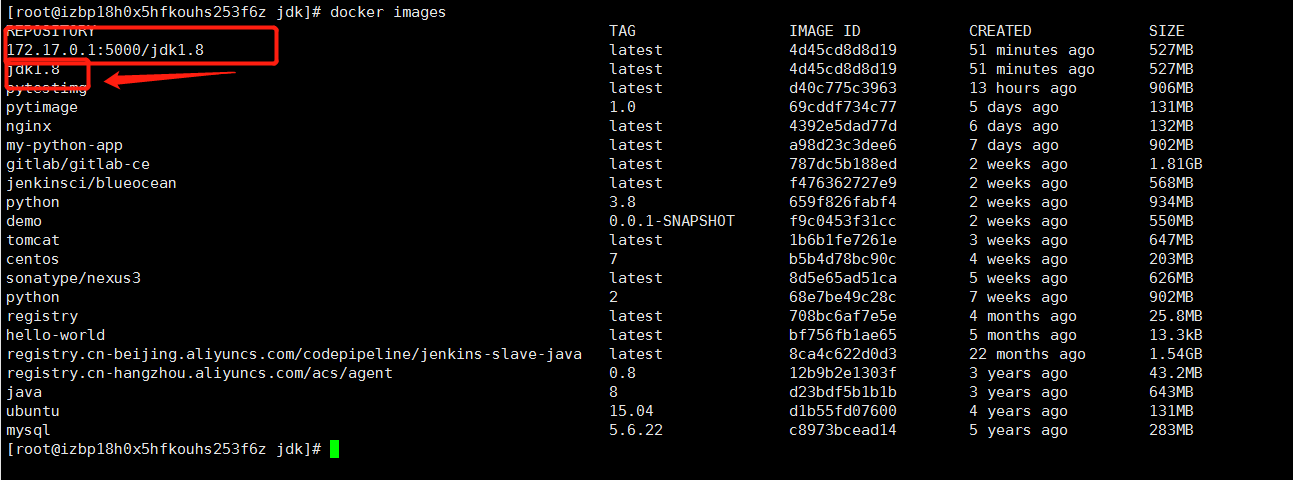 docker tag jdk1.8 172.17.0.1:5000/jdk1.8