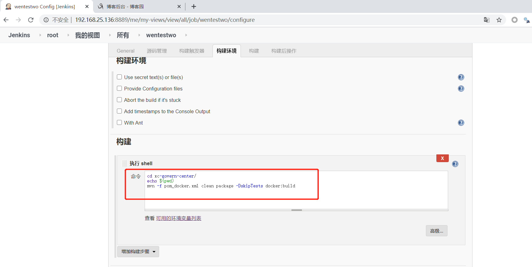 [wentestwo] $ /bin/sh -xe /tmp/jenkins4981408991486797185.sh + cd xc-govern-center/ + pwd + echo /var/jenkins_home/workspace/wentestwo/xc-govern-center /var/jenkins_home/workspace/wentestwo/xc-govern-center + mvn -f pom_docker.xml clean package -DskipTests docker:build /tmp/jenkins4981408991486797185.sh: 4: /tmp/jenkins4981408991486797185.sh: mvn: not found Build step 'Execute shell' marked build as failure Finished: FAILURE