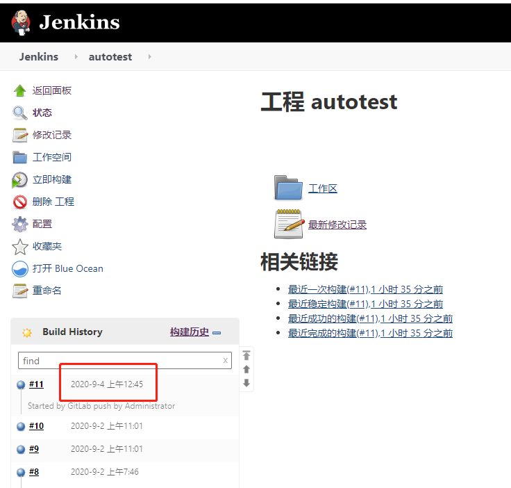 显示的时间是jenkins容器中的时间,与实际时间相差8个小时