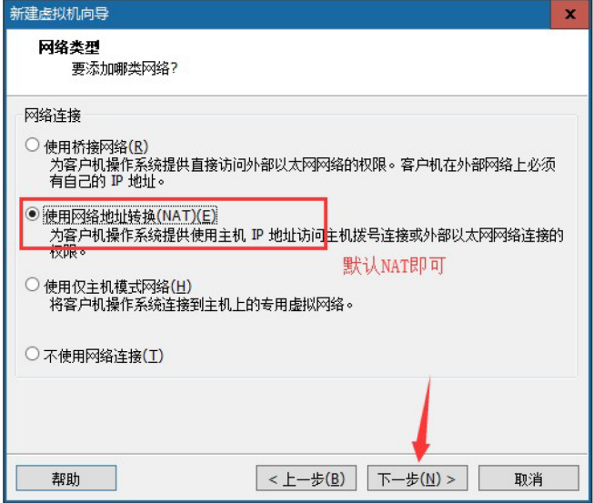 - 3.2 虚拟机网络类型,默认选择NAT即可