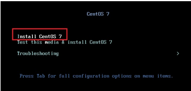 - 3.3 选择安装centos7(通过↑ 或 ↓方向键进行选择),确认后,按下回车