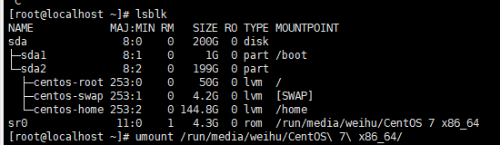 # cd ~ # umount /run/media/weihu/CentOS\ 7\ x86_64