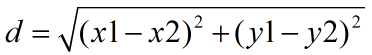 假设A的坐标为(x1,y1),B的坐标为(x2,y2),那么d可按照下式计算: