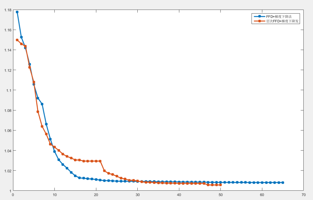 由以上配准结果可知,单次配准陷入了局部极值,也即个别区域没能配准好,相比来说,层次配准的效果就好多了,不过由于层次配准经过了多次插值,导致图像变模糊了。从目标函数值的下降过程也可以看出来后者效果更好: