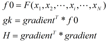 (2) 计算当前控制参数的目标函数值f0、矩阵gk、海塞矩阵H。