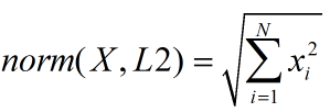 上式中,norm函数为L2范数,e通常取一个很小的值,比如10-12。比如X的L2范数可按下式计算: