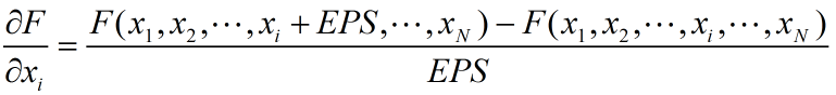 对于每个控制参数,其梯度的计算如下式,其中F为目标函数,EPS为一个较小的数,一般取1或者0.5即可。