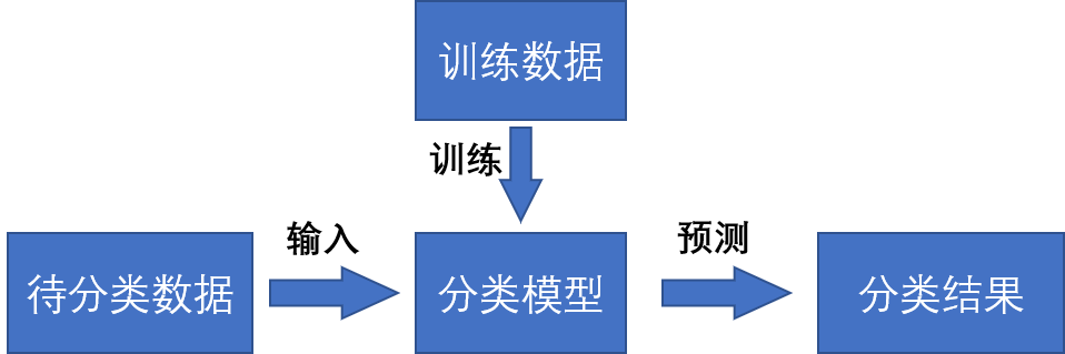 SVM的中文名为支持向量机,是一种非常经典的有监督数据分类算法,也即该算法首先需要训练,训练得到分类模型之后,再使用分类模型对待分类数据进行分类。有监督数据分类算法的大致过程如下图所示: