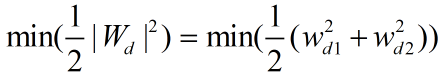 由上式可知当|Wd|取得最小值时,d取得最大值,因此问题又可以等效转换为求下式的最小值,之所以这样转换,使为了后续方便通过求导来求得最优解: