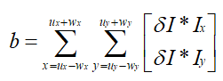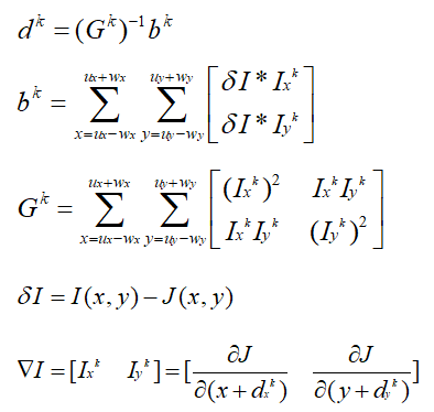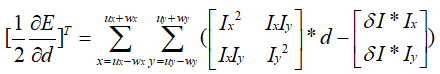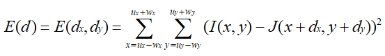 假设待跟踪点坐标为(ux,uy),邻域窗口大小为wx*wy,光流为(dx,dy),则待跟踪点与跟踪点的邻域窗口平方差可如下式表示: