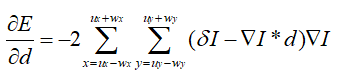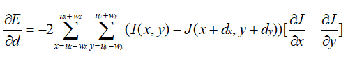 上式中,由于dx和dy都很小,把浮动图像J对x和y的梯度近似替换为参考图像I对x和y的梯度。因为后者在迭代优化过程中是固定不变的,这样就可以避免在每一轮迭代中都计算梯度,可减少很多计算时间。