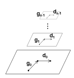 光流即待跟踪点与跟踪点的坐标偏移,每一层金字塔图像都有一个初始光流g和一个剩余光流d,从最顶层往下开始逐层计算,假设有n层金字塔(最顶层为第n-1层),则每层金字塔的初始光流计算如下所示。