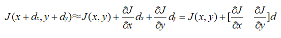 因为是小运动,dx和dy都很小,故对J(x+dx,y+dy)进行泰勒展开并略去高阶项得到:
