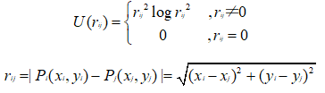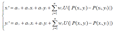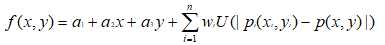 上式中只要求出a1,a2,a3和wi(1≤i≤n),就可以确定f(x,y),其中U为基函数: