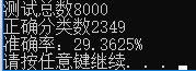 运行上述代码,首先加载训练数据,然后对8000张测试图像进行分类,得到的结果如下。可以看到仅2349张图像识别成功了,29.3625%的识别准确率是非常低的了。