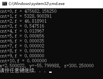ret2 = F_fun(x, y, z); //计算当前次迭代的目标函数值