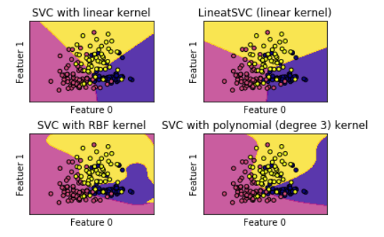 models = (svm.SVC(kernel='linear',C=C),svm.LinearSVC(C=C),svm.SVC(kernel='rbf',gamma=0.7,C=C),svm.SVC(kernel='poly',degree=3,C=C))