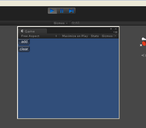 回到Unity,点击运行按钮,会看到刚才的脚本已经运行了。里面有两个按钮。