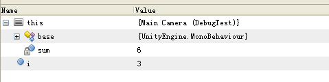留意看下面debug的Locals信息,会看到当前状态下的变量i和sum的值。