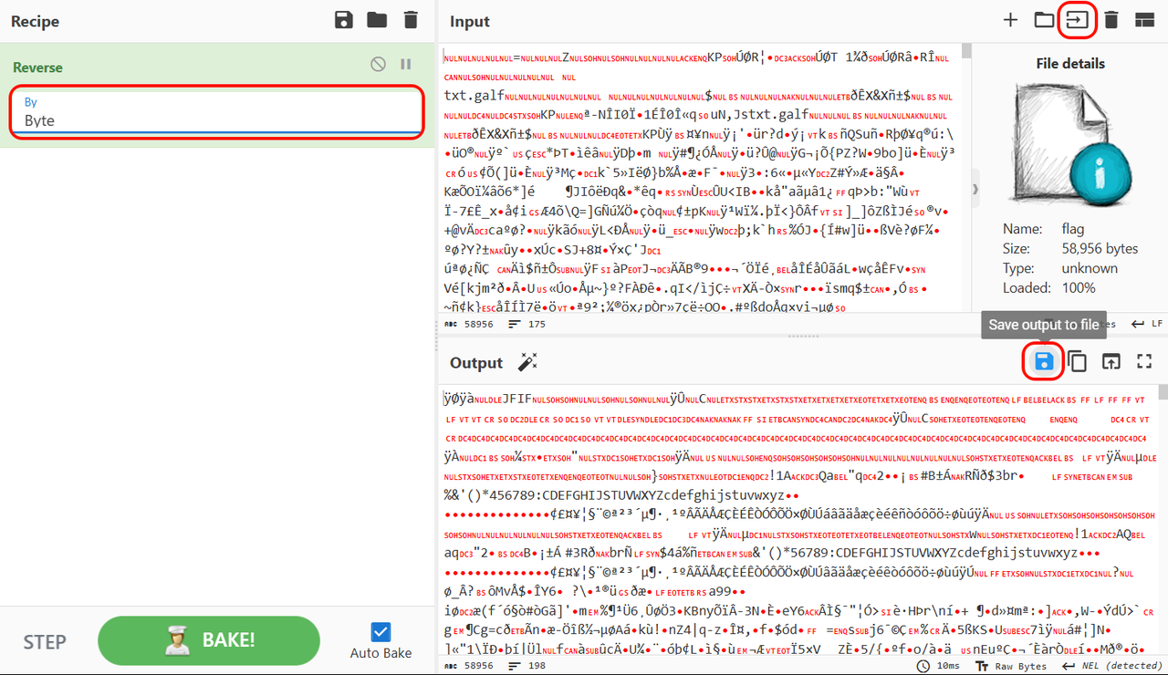 也可以将文件上传到 CyberChef,逆序(注意按字节而不是字符),然后下载: