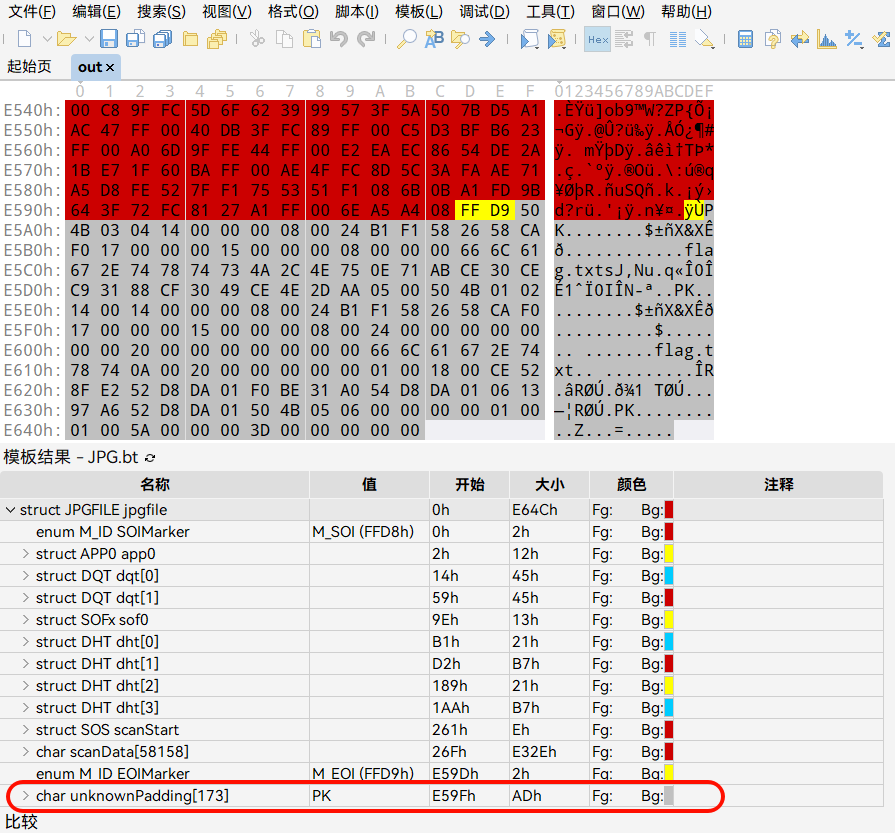得到一个文件,使用 010 Editor 的模板功能可以识别出最后有一个未知区域: