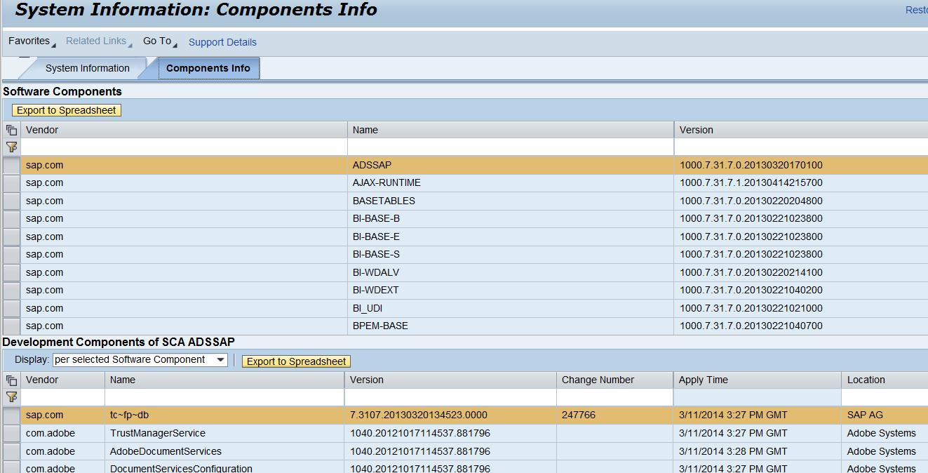 - 打开http:// <AS Java 主机名>:<端口>/monitoring/ComponentInfo 并验证 ADSSAP是否列在系统信息:组件信息下。