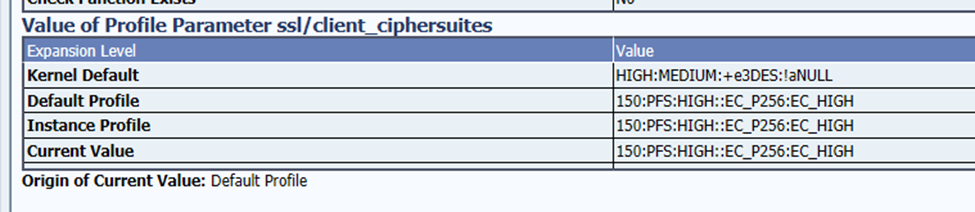 - ssl/client_ciphersuites = 150:PFS:HIGH::EC_P256:EC_HIGH recommended for standard ABAP systems