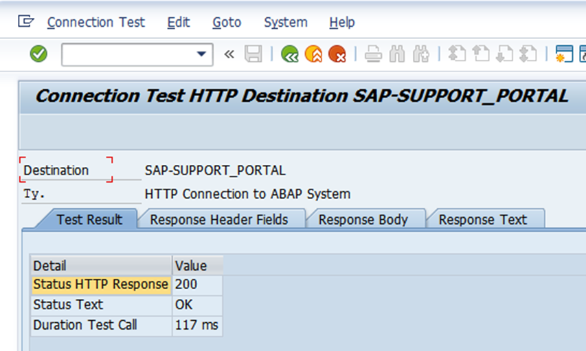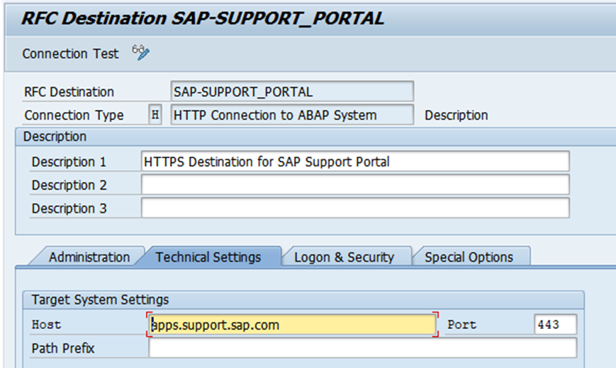 Destination: SAP Support Portal (SAP-SUPPORT_PORTAL - Type H)