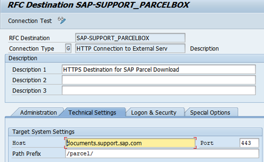 Destination: SAP Parcel Download (SAP-SUPPORT_PARCELBOX - Type G)