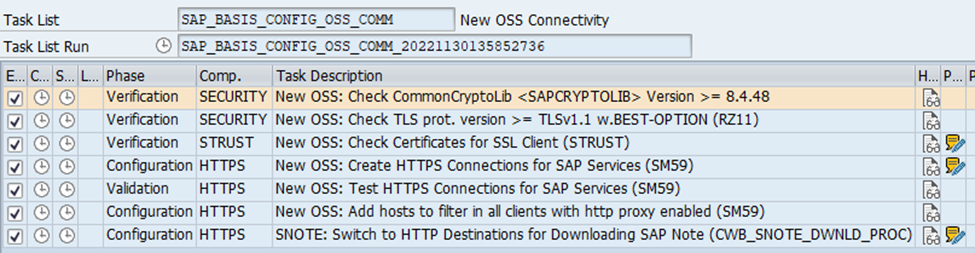 task list SAP_BASIS_CONFIG_OSS_COMM