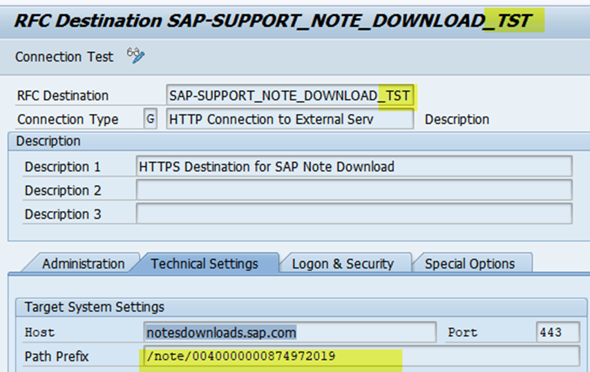 Destination: SAP Note Download (SAP-SUPPORT_NOTE_DOWNLOAD - Type G)